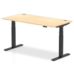 Air 1600x800mm Height Adjustable Desk Maple Top Cable Ports Black Leg