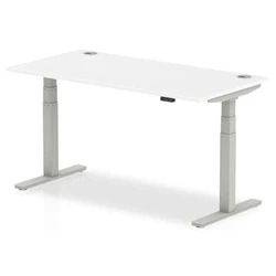 Air 1600x800mm Height Adjustable Desk White Top Cable Ports Silver Leg