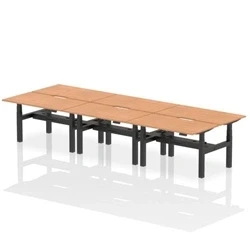 Air B2B 1400x800mm Height Adjustable 6P Bench Desk Scalloped Oak/Black