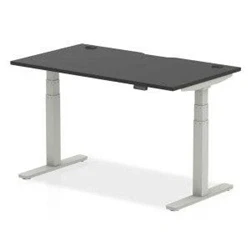Air Black Series 1400 x 800mm Height Adjustable Office Desk Top with Cable Ports Silver Leg