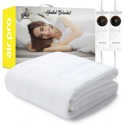 Air Pro Electric Blanket Fully Fitted Mattress Cover With Elastic Straps Premium Fleece Easy Fit Heated Detachable Dual Controllers & Machine Washable Double 135x190cm