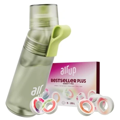 DRINK HEALTHY WATER - TASTE DELICIOUS FRUIT: The innovative air up drinking system combines pure, clean water with your favourite flavour. No sugar, no calories - just the scent of 100% natural flavours. YOUR ORIGINAL AIR UP STARTER SET INCLUDES the new air up STEEL stainless steel drinking bottle in the colour silver plus a FLAVOR 5 tasting set of 5 air up pods in our most popular flavours: Wildberry, Ice Tea Peach, Watermelon, Apple, Cherry THE ORIGINAL: PATENTED SCENTASTE TECHNOLOGY transforms 5 air up flavour rings into up to 25 litres (approx. 5 l/pod) of flavoured water using only the scent in the mouth and nose. Experience the scent-sational game with your senses: Drink water, taste your favourite flavour. FINALLY DRINK ENOUGH WITH AIR UP: Water is too bland, juice and soft drinks far too unhealthy. And sometimes you simply forget to drink with all the stress at school and work. The solution for you: the innovative air up drinking system. The air up Steel bottle provides you with 480 ml of sugar-free flavour scent wherever you go. RELIABLE AND SAFE - WITH AND WITHOUT CARBON ACID: The dishwasher-safe air up bottle made from food-safe silicone and BPA-free Tritan is easy to refill and can be closed tightly. The ideal companion for school, office, gym and when travelling.