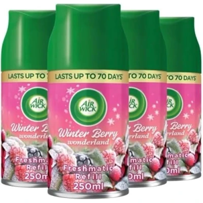 Air Wick Freshmatic Automatic Freshener Refills Odour Neutraliser for Bathroom & Room Winter Berry Wonderland Scent 4 x 250ml Lasts Up to 280 Days