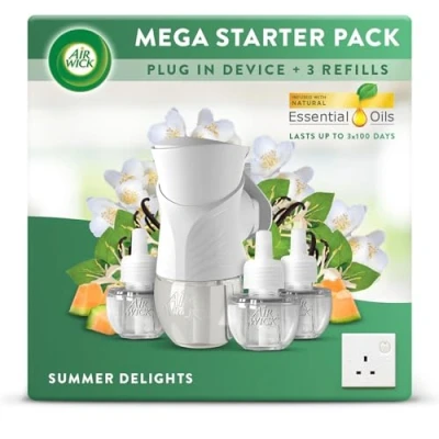 Air Wick Plug in Diffuser Bundle Kit, Summer delight, 1 Device & 3 Refill (19ml), Long Lasting Fragrance, Lasts up to 300 days, freshener