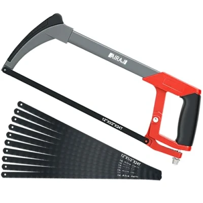 AIRAJ Hacksaw 300MM,Handheld with 10 Interchangeable Blades,45/90 Frame for Metal,Wood,Steel,PVC Pipe,Frozen Meat,Hacksaw and Plastic,Professional High Tension