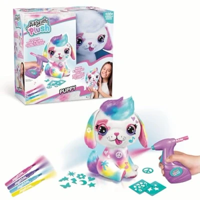 PERSONALISE YOUR PLUSH: Each pack comes with a soft Puppy plush for you to decorate with the fun airbrush & chalk pens! CREATE DIFFERENT DESIGNS: Wash-off your designs easily with water and start again! Over 100 stencils included to use or design your plush free-hand. REAL AIRBRUSH: Includes a real airbrush & 4 assorted colour chalk marker pens Batteries required: 2 x AA (not included) Refill kit available for this item - Airbrush Plush Refill Kit 10 Pack (B0CVXZH7FC).