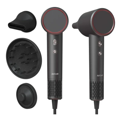 - This Air Craft hair dryer's powerful 120,000 rpm motor dries your hair quickly, so you can get on with your day- Millions of negative ions lock in moisture, leaving your hair smooth, shiny, and healthy in no time- 3 heat settings and a smart sensor keep the temperature just right, with HeatPulse mode for faster drying- No more guessing, as the heat level halo changes colour to show exactly how hot the airflow is- Use the concentrator nozzle to keep straight hair smooth, or the diffuser to enhance your curls- The magnetic attachments and a stylish storage bag for makes it easy to carry along for your trips
