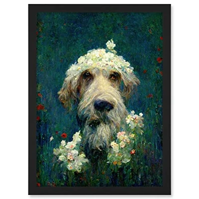Airedale Terrier Dog Wildflower Meadow With Flowers Claude Monet Style Artwork Framed A3 Wall Art Print