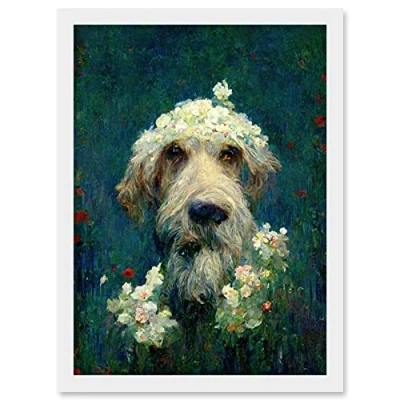 Airedale Terrier Dog Wildflower Meadow With Flowers Claude Monet Style Artwork Framed Wall Art Print A4