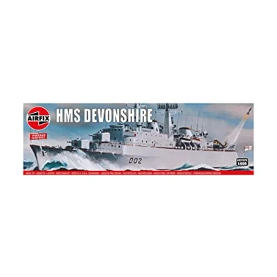 Airfix Vintage Classics Set HMS Devonshire Warships Plastic Model Ship Kits for Adults & Children 8+, Includes 80 Pieces 1:600 Scale