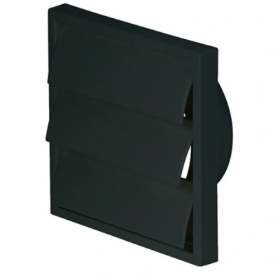 Airflow 100mm Gravity Grille - Black (90002004R). Weather resistant gravity flap grille in black, suitable for air discharge of Airflow extractor fans. Vent supplied with four gravity flaps. Genuine brand new NSS product, covered by a NSS manufacturer's guarantee.