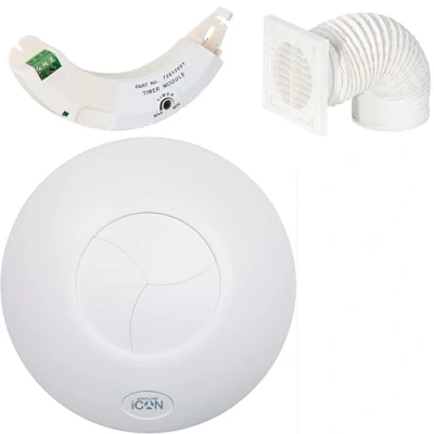 Complete Package: Includes adjustable timer module, 140 x 140 x 100mm white square fixed grille, 3m PVC flexible hose, and cable ties; supports wall/ceiling, surface/recessed mounting. Adjustable Run-On Timer (1–30 Minutes) – Keeps the fan running after switch-off to help clear moisture and odors. Factory pre-set to approx. 15 minutes and adjustable using the included tool. Powerful & Energy Efficient: Delivers 19 l/s airflow with only 9.7W power consumption, providing efficient ventilation while keeping energy costs low. Multiple Color Cover Options – Covers available in stylish colours such as silver, chrome, anthracite, and navy blue, allowing you to choose the perfect option that complements your bathroom's aesthetic 3 Years Long Warranty: Meets 2010 Building Regulations (SFP 0.49 w/l/s) and comes with a 3-year manufacturer warranty for peace of mind. Compact & Versatile Design: 100mm (4") fan suitable for toilets, en-suites, shower rooms, and bathrooms; fits seamlessly into wall or ceiling spaces with cantilever fixing lugs for recessed installation., Weight: 2.866009406 pounds, Manufacturer: Airflow