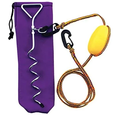 Perfect for anchoring PWC in shallow water just off the beach Screw the zinc-plated anchor into compacted sand or mud in 2-3 ft. of water Padded nylon storage case protects watercraft & dampens noise while stowed Giant nylon snap hook at each end 8 ft. Long marine grade rope