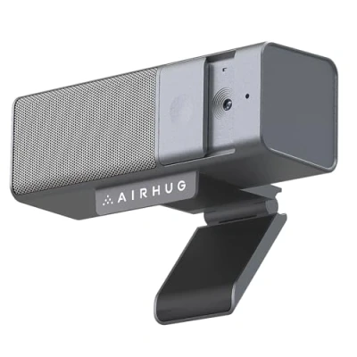 Crisp 1080P Video - The AIRHUG 16 webcam with built in mic & speaker delivers sharp 1080p/30fps clarity. Its 2.07MP sensor with auto white balance, 76° field of view, and fixed focus ensures professional grade video calls. Great for conferences, meetings & streaming, it keeps you looking your best Clear Audio and Volume - Equipped with a powerful speaker and excellent quality microphone, the AIRHUG 16 video conference camera facilitates meetings with multiple attendees. Its 5W speaker delivers clear and loud sound with a maximum volume of ≥90dB, ensuring everyone in the room can hear clearly, even in noisy environments or large conference rooms. It's great for conferences with 3-5 participants Smart Microphone Feature - The AIRHUG 16's built in microphone clearly captures voices up to 6 feet away. With -38dB sensitivity, 65dB noise reduction, and auto volume adjustment, it delivers crystal-clear audio for Zoom/Skype/Teams calls. Suitable for online classes, remote meetings, and video chats Ultra Portable Design - The AIRHUG 16 all-in-one video conferencing camera is compact (5.5×2.8×2.3 in, 5.9 oz) fits in any bag. This USB webcam comes with a universal clip that fits laptops, desktops, PCs, LCD monitors, and even curved screens. You can stand it vertically on a conference table or use a webcam tripod clip (sold separately) to adjust angles for any meeting setup Easy to Setup - The AIRHUG 16 webcam with microphone and speaker comes with a privacy cover for your security. It easily connects to PCs and laptops via a USB cable without needing extra drivers and supports operating systems including Windows 7, 8, 10, 11, and Mac OS. The package conttains the AIRHUG 16 3 in 1 camera, a Type C core cable, a user manual, and a product quality assurance card. AIURHUG 16 is an great choicefor your video conferencing requirements