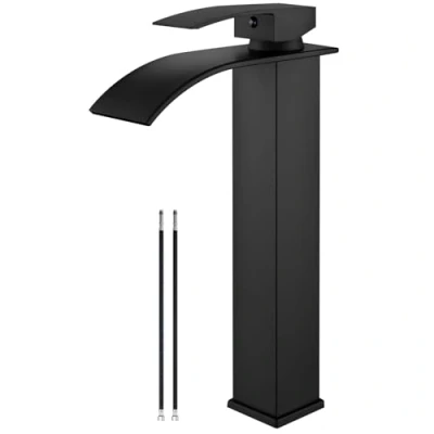 [Material]:Constructed of premium brass, sturdy and heavy-duty. It will not leak. Great pressure, sometimes you may need to turn the water pressure down for better use. [Design]:The ultra-wide tall waterfall spout design make large water flow. Matte black finish resist corrosion and can prevent tarnishing, highly reflective. The mirror-like finish is suitable for any contemporary decorating style. Single handle easy control flow and temperature. [Installation]:Super-easy to install, deck mount, one hole. Come with installation instruction. [Dimensions]:Overall Height: 12.2 inch, Spout Height: 8.86 inch, Spout Reach: 5 inch. [Notice]:Sink mounting hole 1.18 inch (3cm) to 2 inch(5cm). The packaging includes standard US 3/8” hoses, 3/8” and 1/2'' water line adapters., Weight: 1.8959754532 Pounds, Manufacturer: Li yang