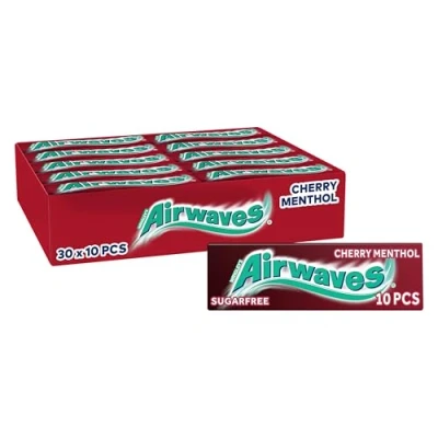 Airwaves Cherry Menthol Sugarfree Chewing Gum, with Mint Freshness, 30 Packs of 10 Pieces