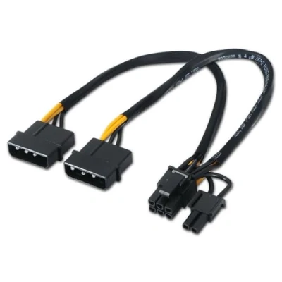 Power cable for graphics cards with PCI Express 6 pin or 8 pin connection. Include two molex 4 pin Male Connector on one end, and a 6 + 2 pin male connectors on the other. Ideal for powering next-generation graphics cards The product is 100% tested. Meets the RoHS Compliant.