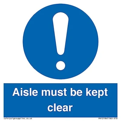 Aisle Must Be Kept Clear Sign 100x100mm S10