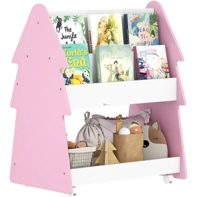 AIYAPLAY Double Sided Children's Bookcase with Wheels for Playroom, Pink