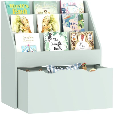 AIYAPLAY Kids Bookcase w/ 3 Tier Shelves, Drawer, for Bedroom, Nursery, Green
