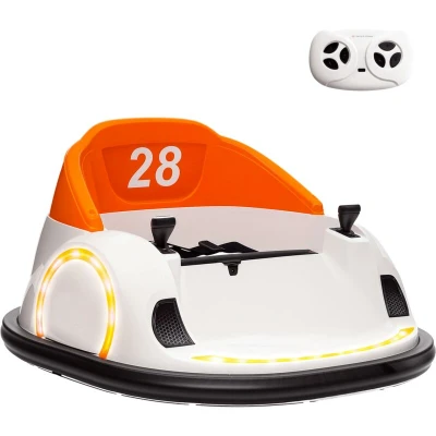 AIYAPLAY Kids Bumper Car, 360 Degree Rotation 12V Waltzer Battery Powered Ride On Toy with Remote Control, Dual Joysticks, Music, USB, LED Lights, Horn for Boys Girls, Orange