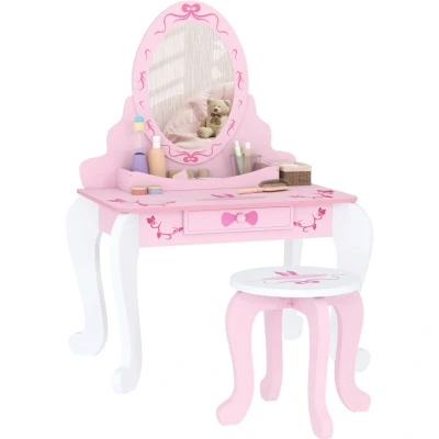 General description A wonderful addition to your child's space, the practical AIYAPLAY dressing table set with a matching stool creates a personal area for morning routines, makeup fun, and creative play. Featuring a shatter-resistant acrylic mirror and rounded corners, it ensures a safe and smooth experience for kids. The set includes a drawer and a spacious desktop, helping to keep everything neat and organized, eliminating worries about clutter! Technical specifications Colour: Pink and white Material: MDF and acrylic Table dimensions: 89H x 65W x 45D cm Stool dimensions: 30H x Φ28 cm Mirror dimensions: 27H x 20W cm Mirror frame dimensions: 39.5H x 27W cm Tabletop dimensions: 49.5H x 60L x 39.5W cm Storage compartment dimensions: 7H x 37.5W x 10D cm Drawer dimensions: 5H x 24W x 23D cm Approved age: 3+ years Recommended age: 3-6 years Weight capacity: Table: 40 kg; Stool: 60 kg Safety standard: EN71-1-2-3, EN17191 Item label: 316-023V81PK Usage The AIYAPLAY dressing table set is