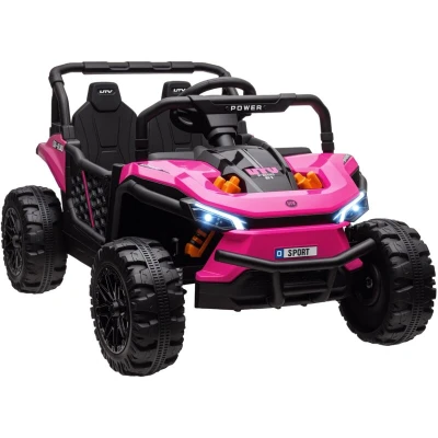 AIYAPLAY Kids Ride on Car, 12V Battery Powered Electric Truck with Remote Control, 4 Suspension Wheels, Horn, Lights, Music, USB, for Ages 3 5 Years, Pink
