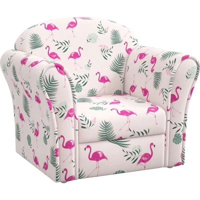 AIYAPLAY Kids Sofa Chair, Toddler Armchair with Flamingo Design, Wooden Frame, Upholstered Chair for Bedroom, Playroom, Room, Pink