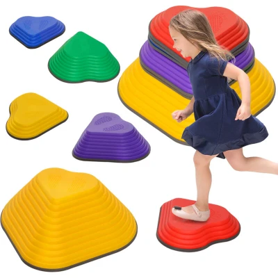 AIYAPLAY Stepping Stones Kids, 6PCs Balance for Heart Shaped Non Slip Stackable River Stones, Sensory Toy & Motor Skills, Indoor Outdoor Obstacle Courses