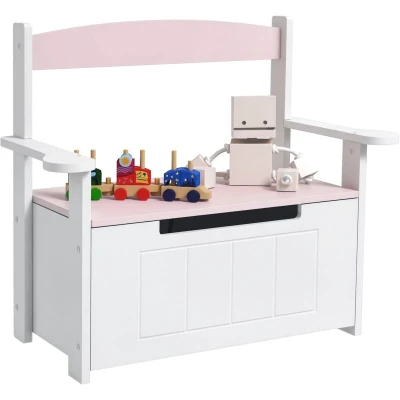 AIYAPLAY Toy Box, 2 in 1 Storage Chest Kids with Lid, Large Organiser Bench for Bedroom, Nursery, Playroom, Pink