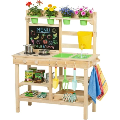 AIYAPLAY Wooden Kids Mud Kitchen with Kitchenware & Garden Tools