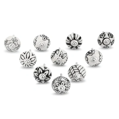 Ajuny Handpainted Ceramic Knobs Cupboard Drawer Door and Furniture Pulls Kitchen Cabinet Glossy Finishing Handles Pull Floral Knob (White Black, Set of 10)