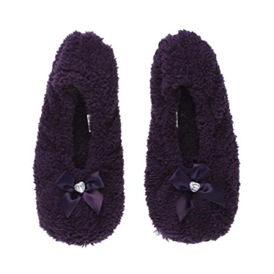 AJVANI Elastic Slip on Novelty Fleece Bow Slippers Socks Size Medium 5 6