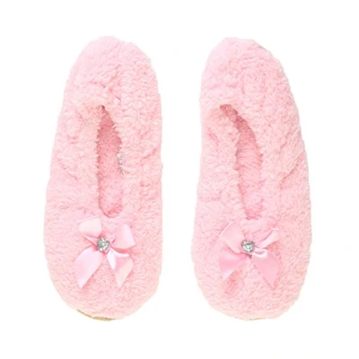 AJVANI elastic slip on novelty fleece bow slippers socks size medium 5 6