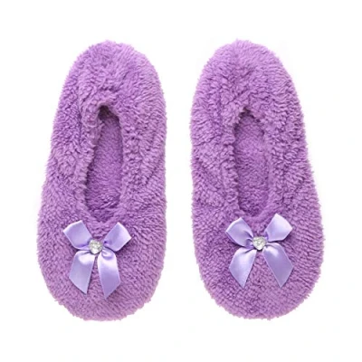 AJVANI elastic slip on novelty fleece bow slippers socks size medium 5 6