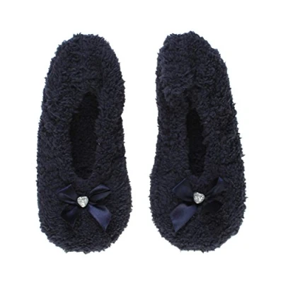 AJVANI Elastic Slip on Novelty Fleece Bow Slippers Socks Size x Large Navy