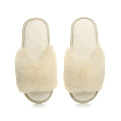 AJVANI Fluffy Indoor Memory Foam Washable peep Toe Slippers Slides Size Beige