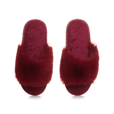 AJVANI Fluffy Indoor Memory Foam Washable peep Toe Slippers Slides Size Burgundy