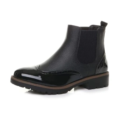 AJVANI Low Block Heel Slip on Brogue Chelsea Ankle Boots Size 4 37 Black