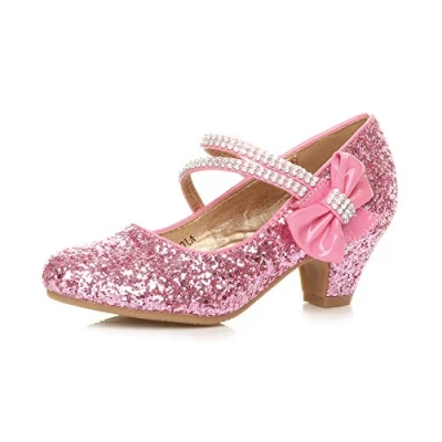 AJVANI Mary Jane Diamante Bow Bridesmaid Party Princess Heels Shoes Size 2