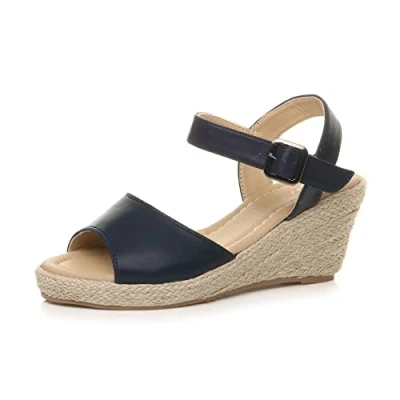 AJVANI Wedge Heel Diamante Strappy Espadrille Platform Sandals Size 7 40