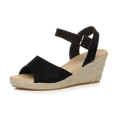 AJVANI Wedge Heel Diamante Strappy Espadrille Platform Sandals Size 8 41 Black Suede