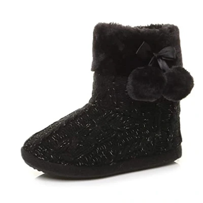 AJVANI Winter Slipper pom Faux Fur Lined Knitted Ankle Boots Size 5 38