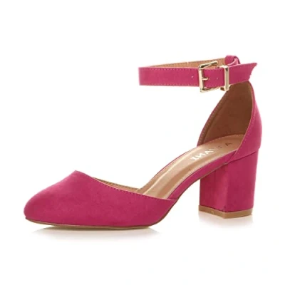 Ajvani Womens Ladies Low mid Block Heel Ankle Strap Court Shoes Sandals, 8 UK, Fuchsia Suede