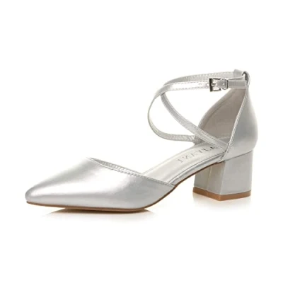 AJVANI Womens Ladies mid Block Heel Cross Strap Evening Mary Jane Court Shoes Size 6 39 Silver