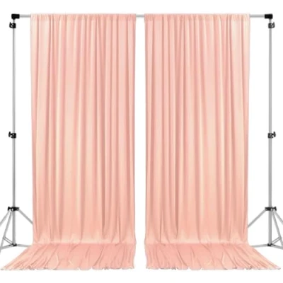 ✅ DIMENSIONS: Each order is for 2 (two) polyester curtains. Each curtain measures 5 feet wide x 8 feet high. Entire backdrop measures 10 feet wide x 8 feet high. ✅ MATERIAL: 100% High Quality Polyester - Polyester fabric is stain and wrinkle resistance; Can withstand various cleaning chemicals while maintaining it's elegant look through over 75+ wash cycles. ✅ USES: Perfect for weddings, receptions, parties, catered presentations, bridal and baby showers, birthdays, candy buffets, dessert tables and more. Used as drape for pipe and drape system also. ✅ QUALITY: Sides and bottom are serged for a clean finished look. 4-Inch Rod Pocket on the top. Cover stitch line sewn. Single layer, unlined, semi opaque decorative backdrop
