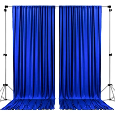DIMENSIONS: Each order is for 2 (two) polyester curtains. Each curtain measures 5 feet wide x 8 feet high. Entire backdrop measures 10 feet wide x 8 feet high. MATERIAL: 100% High Quality Polyester - Polyester fabric is stain and wrinkle resistance; Can withstand various cleaning chemicals while maintaining it's elegant look through over 75+ wash cycles. USES: Perfect for weddings, receptions, parties, catered presentations, bridal and baby showers, birthdays, candy buffets, dessert tables and more. Used as drape for pipe and drape system also. QUALITY: Sides and bottom are serged for a clean finished look. 4-Inch Rod Pocket on the top. Cover stitch line sewn. Single layer, unlined, semi opaque decorative backdrop NFPA701 CERTIFIED: Our polyester drapes are Inherently Fire Retardant (IFR) and certified under NFPA 701, meeting the highest standards for indoor flame retardancy. Offering peace of mind during events, where safety is paramount.