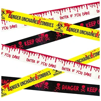 AKH® Halloween fright Tape 18M / 59ft Banner Decoration Set Horror beware keep out Unchained zombies Warning Caution Tapes