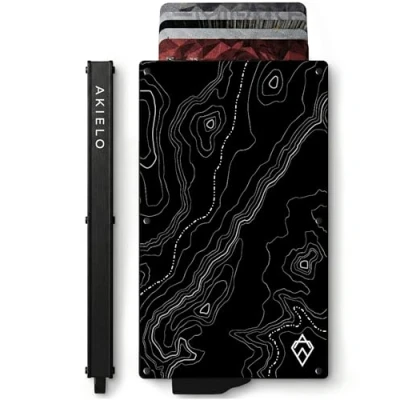 AKIELO RFID Blocking Card Holder with Gift Box Slim Minimalist Metal Blocker Wallet for Men Contactless Credit Protector (Alpha Topo Edition)