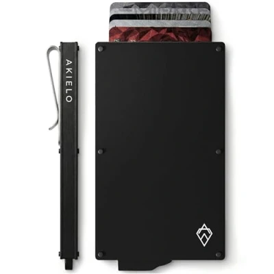 ✓ THE DAILY ESSENTIAL | Introducing ALPHA, a distinctive and stylish range of minimalist wallets, that stand out from the crowd yet are casually cool. Designed for uncompromising strength and protection, with beautiful colour finishes in the slimmest profile, full RFID protection, a quick access ejector system and drop-safe card grips. Finished in a solid Aircraft Grade 6061 Series Aluminium body that can withstand the toughest handling. ✓ STORE BOTH CARDS & CASH | Insert up to 5 embossed bank / credit cards, which are typically thicker, or 8 flat cards and eject them all with ease using our stack & slide ejector wallet system. Prefer to keep more cash on you, then our stainless steel money clip will now also keep your notes safe too. Plus, all our metal RFID blocking wallets have gone through rigorous testing to ensure all components meet the highest standards that you deserve. ✓ A PERFECT GIFT | The AKIELO Wallet will arrive beautifully presented in our luxury matte black gift box. A gift for every occasion and perfect for those gents looking for a beautifully crafted mens wallet. All three colourways are beautifully stamped with the AKIELO hallmark reflecting the utmost style and workmanship. ✓ PROTECT YOUR PRIVACY | Contactless cards are now the norm and thieves are taking advantage of this, using card-reading apps and simple devices to clone cards and take your funds. The ALPHA Wallet guarantees contactless card protection. With our secure credit card holders, it's impossible for anyone to access your data. ✓ REPLACE THE OLD WITH THE NEW | The ALPHA Wallet is perfect for those looking for a lightweight and slim metal wallet or RFID card protector. With a similar thickness to that of an iPhone, it is a great alternative to conventional, bulky, leather wallets for men and protects your most important cards from bending and breaking.